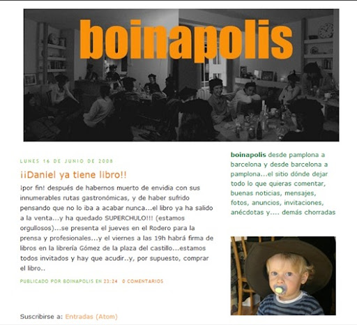 ¿qué hay de nuevo? Os informo que ha nacido un nuevo blog. A la gente de Pamplona les ha entrado envidia de nuestro superblog, así que hemos pensado en crear uno para la gente de por aquí...así que ya tenemos nuestro primer blog amigo!!! esta es la dirección: www.boinapolis.blogspot.com ( a ver si en éste la gente se anima más a publicar...eeeh?)